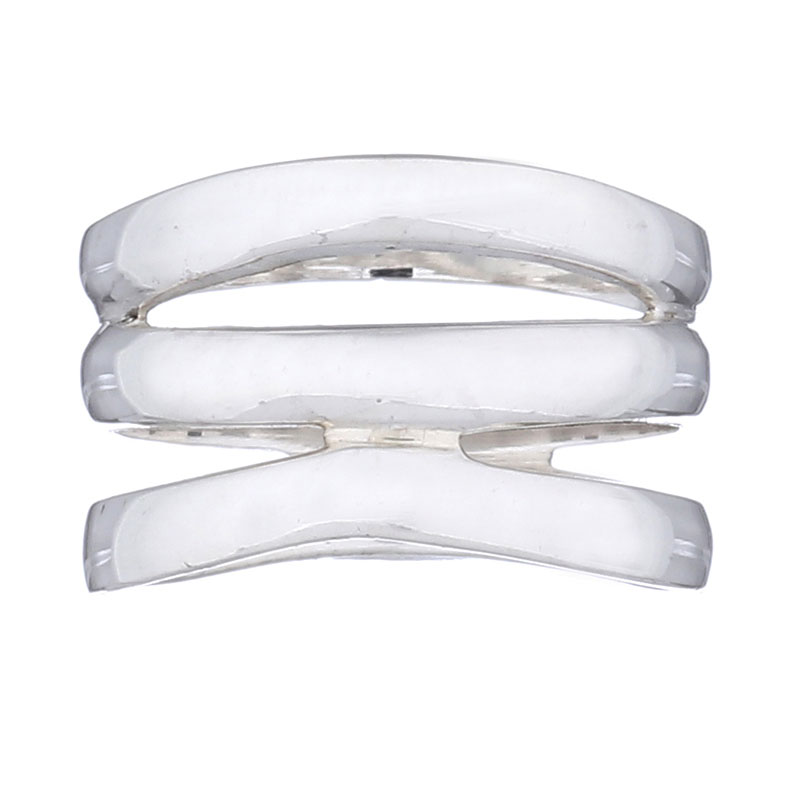 Plain Sterling Silver ring shows an exciting design presented as triple bands these shiny rings are one. The top band slightly cone shaped the middle band slightly shifted and straightened at top uniting with the bottom band creates an in vogue Unique Planet Silver designer ring looking trendy on the finger.