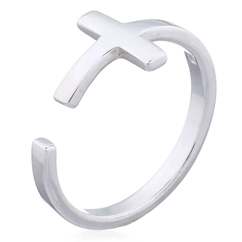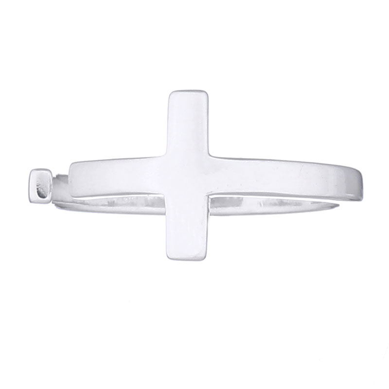 Religious-inspired sterling silver cross ring. The squared open band is perfectly beveled and polished with a small parallel section creating a bold and totally modern cross ring. Top quality craftsmanship create an outstanding silver ring for everyday wear.