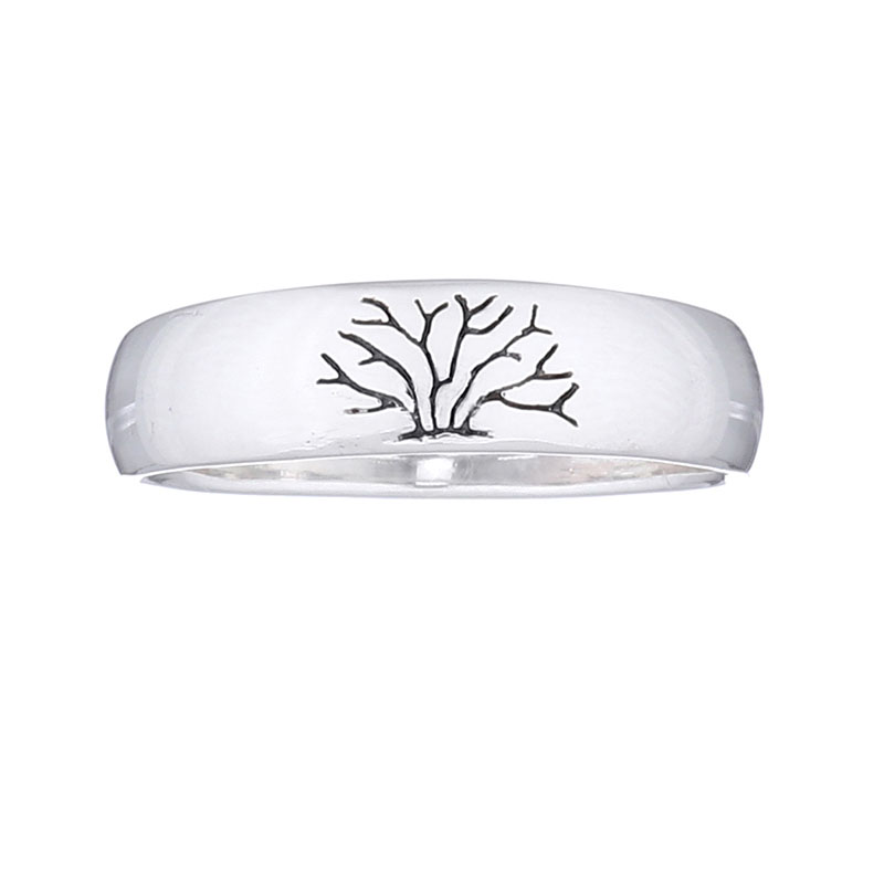 The delicate grooves on top of this perfectly polished sterling silver band represent a tree of life: a mystical tree signifying the union of all life that exists. This silver band ring is of minimalistic design yet capable of becoming a quite popular piece with your customers.