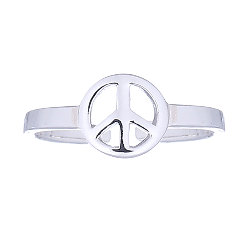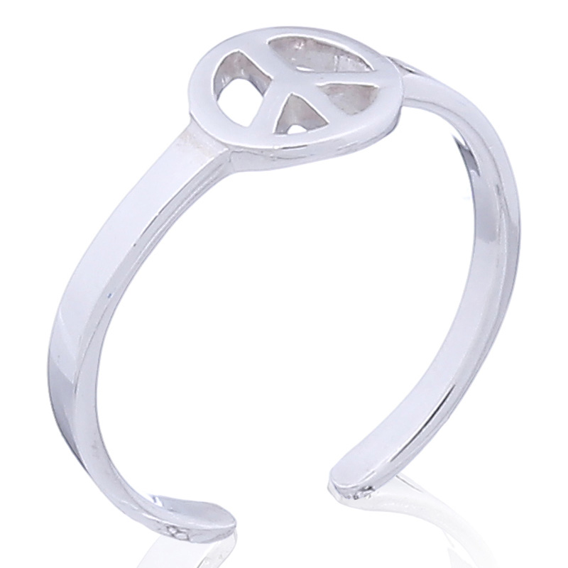 Adjustable peace toe ring featuring incredible polished and beveled surfaces. Due to the immense popularity of the well-known peace symbol this is a toe ring that should not be absent from any jewelry shop.