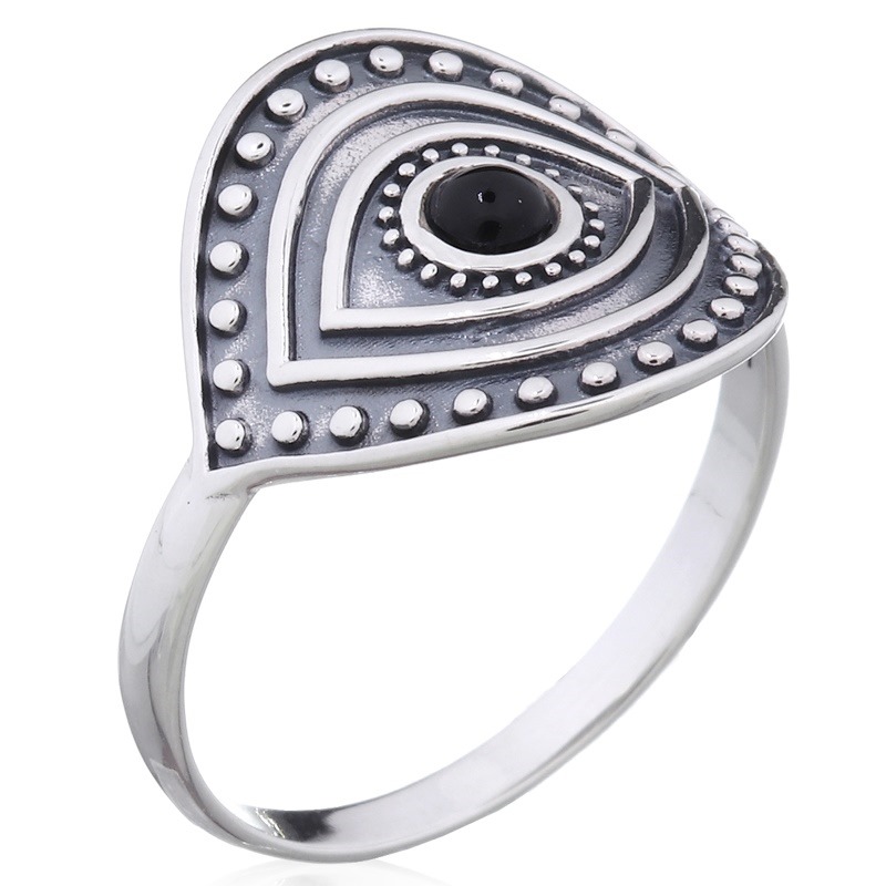 This protective ring features the classic black evil eye design, crafted in high-quality 925 sterling silver. Its unique look makes it a popular choice for customers seeking both style and protection. Take advantage of our factory-direct pricing.