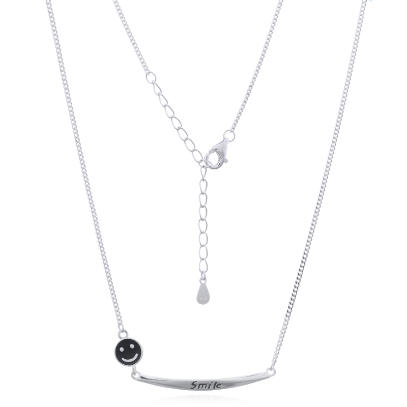 This radiant 925 sterling silver Smile Emoji necklace features a classic curb chain with a charming silver circle disc adorned by a playful smile emoji and the word “smile” engraved on a matching silver plate charm. Perfect for retailers seeking uplifting, trendy jewelry that delights customers.