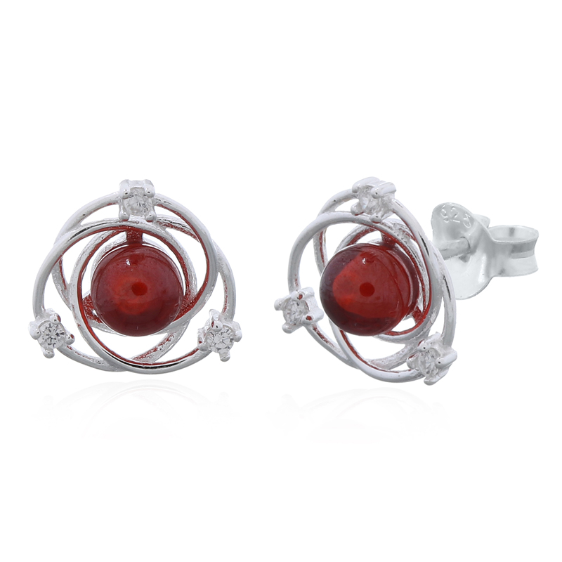 Crafted from high-quality 925 sterling silver, these garnet stud earrings showcase rich red spheres elegantly embraced by a silver wire nest setting. An ideal choice for retailers offering distinctive and beautifully crafted gemstone accessories.
