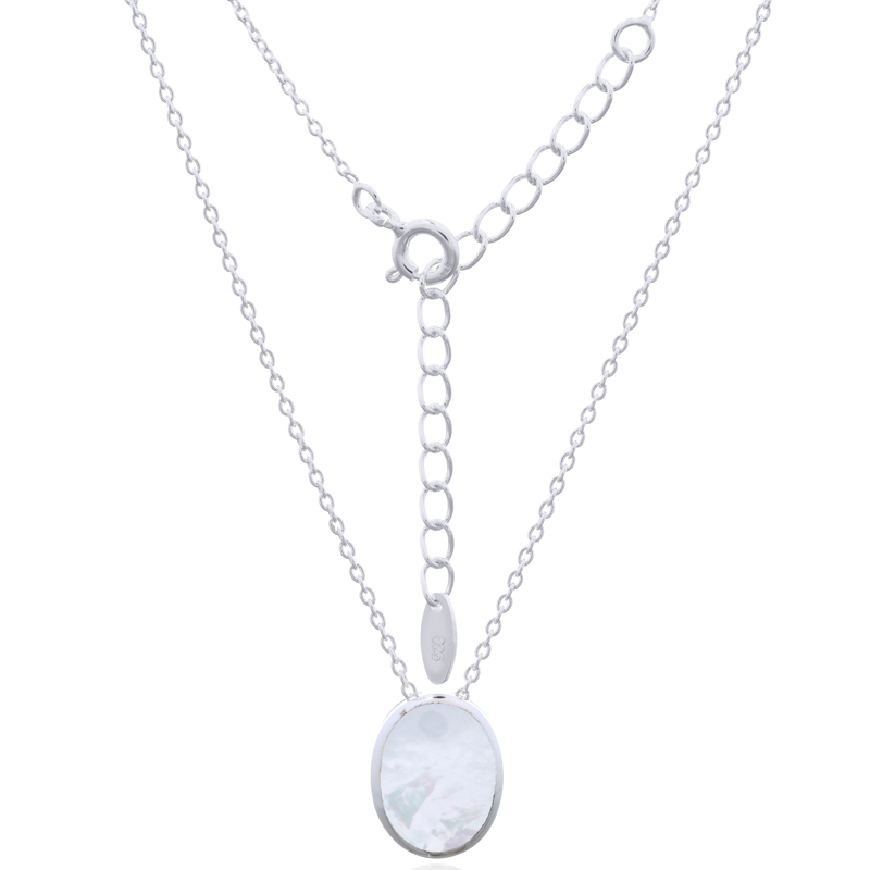 Elevate your inventory with this stylish 925 sterling silver cable chain necklace with Mother of Pearl, highlighted by a sleek oval pendant inlaid with radiant MOP. Ideal for retailers offering contemporary accessories that blend simplicity with refined, natural elegance. Charm Size is 10 x 12 x 4 mm.