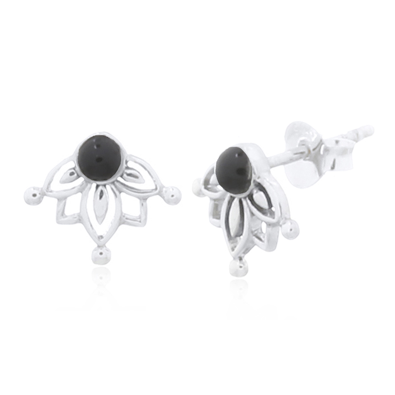 These delightful little lotus stud earrings feature synthetic black agate, offering a unique and playful look. Retailers can attract customers seeking fun, stylish pieces that showcase individuality and flair.