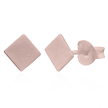 Stamped square plate in stud earrings is made by 925 sterling silver and flash rose gold plating.