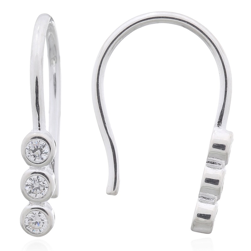 Round CZ stones shine brilliantly in these three-stone dangle earrings, providing a timeless elegance. Their classic design is suitable for any occasion, making them a versatile addition to any jewelry collection. Promote these earrings for an essential piece your customers will love!
