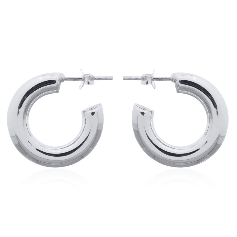 Ear studs displaying a open circle shape made from Sterling Silver tubes exhibit an outstanding polished surface only possible by adhering to strict quality control regulations.