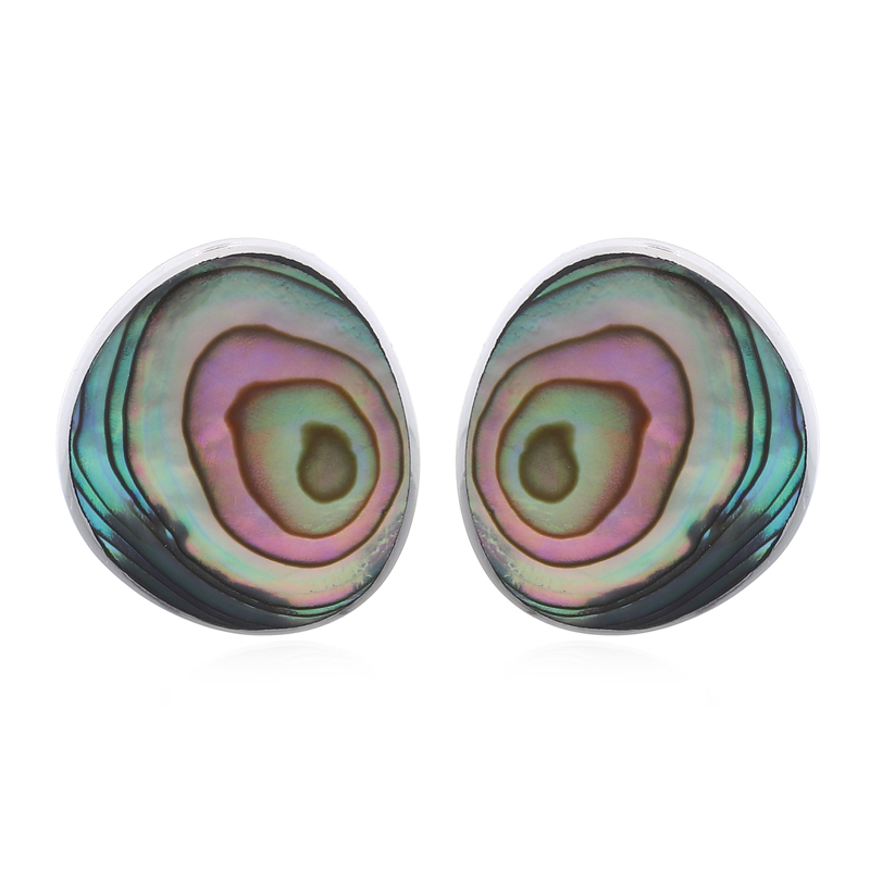 These elegant stud earrings feature vibrant abalone shell inlays set in polished 925 sterling silver, showcasing a unique rounded triangular shape. Known for its mesmerizing iridescence with shades of blue, green, and purple, abalone adds a natural, eye-catching beauty to each piece. Perfect for customers seeking timeless sophistication with a modern, colorful twist, these earrings blend organic charm with refined craftsmanship.