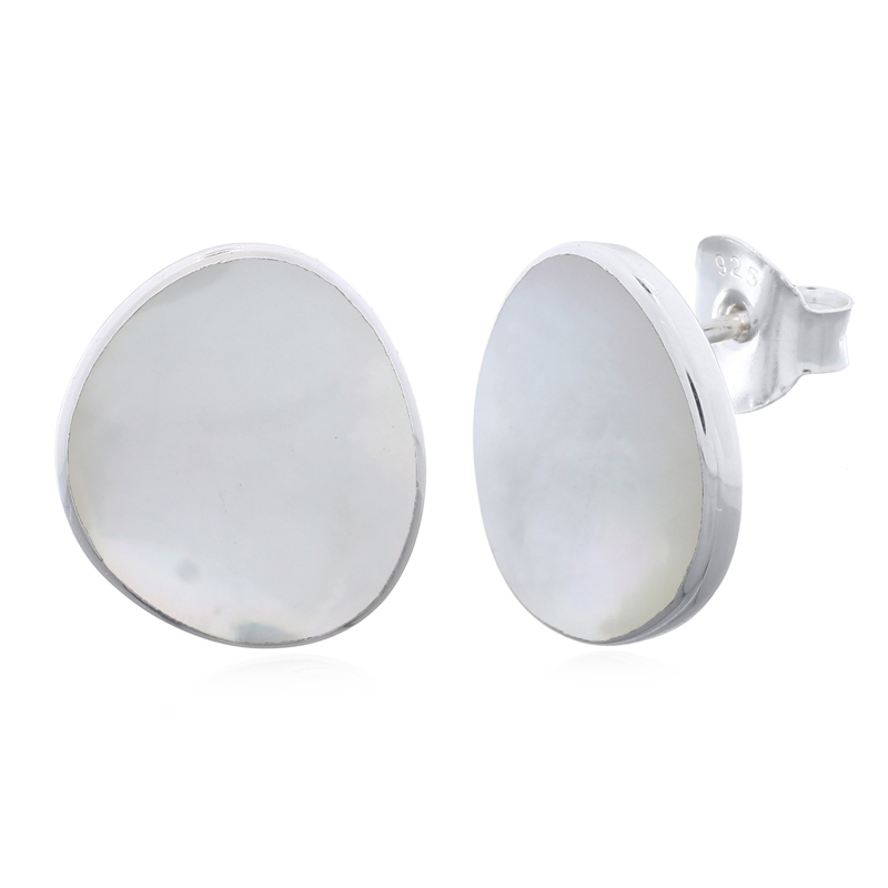 These elegant studs feature shimmering mother-of-pearl set in polished 925 sterling silver with a unique rounded triangular shape. Radiate natural beauty and modern sophistication, perfect for any occasion.
