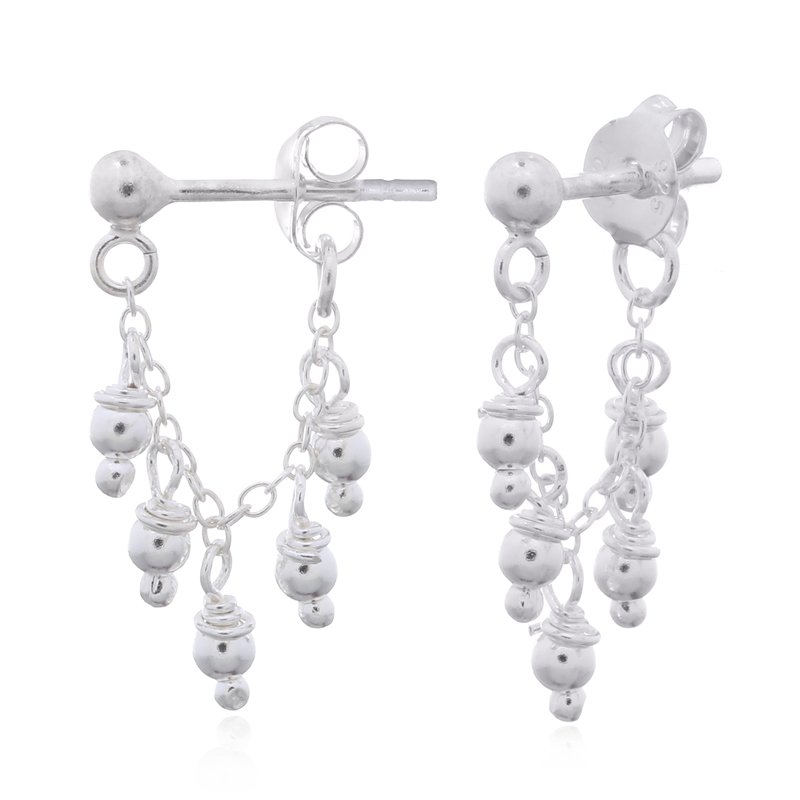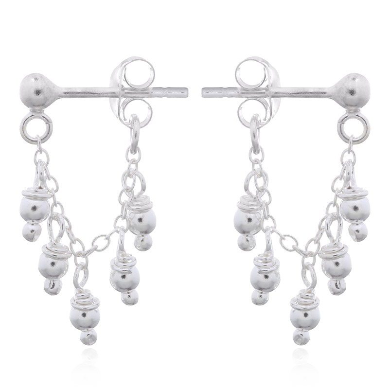 These silver balls chandelier stud earrings offer a bold and fashionable look. Ideal for making a statement, they add a touch of elegance to any outfit. Benefit from our competitive wholesale prices.
