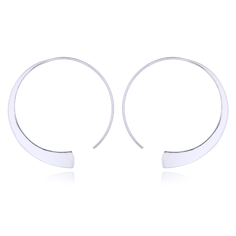 Contemporary semi-hoop flat bended and tapered sterling silver drop earrings. Best for party ladies or everyday wear!