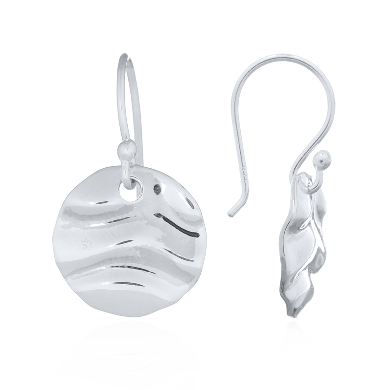 Add a touch of sophistication to your collection with these semi-ruffled round disc earrings. The 925 sterling silver design ensures a stunning shine that catches the eye. Benefit from our factory pricing for these elegant and versatile pieces.