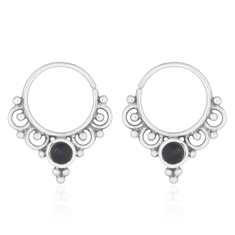 Discover the charm of these ornamented black stone septum hoop earrings. Their intricate design and sterling silver setting are perfect for any collection. Enjoy the advantages of our factory-direct pricing for improved profitability.