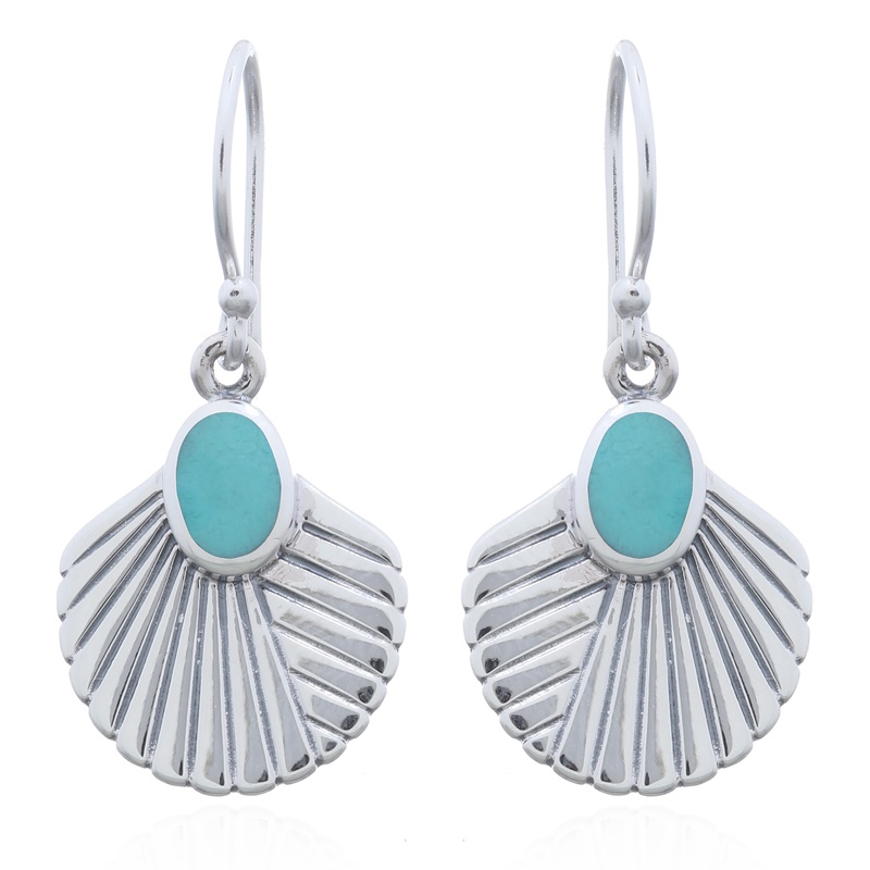 Shell-shaped earrings with an oval green stone dangle offer a vibrant and stylish accessory. Ideal for attracting customers looking for unique designs. Benefit from our factory pricing.