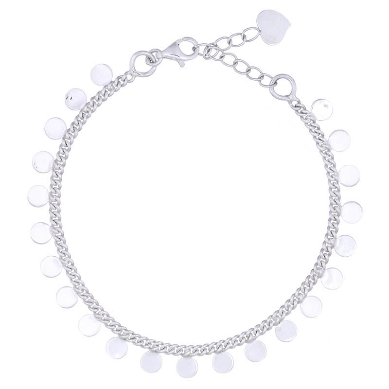 Bright and shiny round disc charms silver flat spheres adorned this beautiful piece of sterling silver bracelet.
