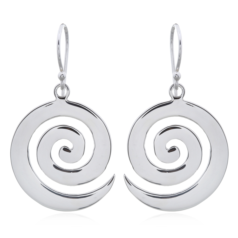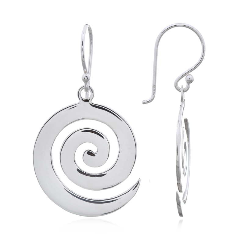 Shiny contemporary jewelry design creates these delicate Danglers that present us the ever popular spiral as a petite pair of earrings. Crafted with Sterling Silver and with hooks these earrings are forever popular their petite size makes them adorable jewelry.
