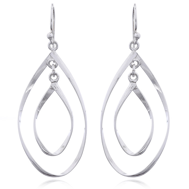 Twisted Outlines of drops carry each in their center a twisted outline of a drop. The composition is light and airy and the result is a flattering Sterling Silver wirework earring design with a highly decorative effect. Small enough to wear at work and large enough to have a great night out.