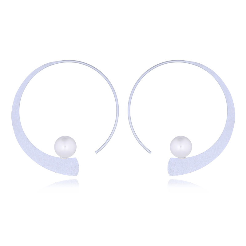Flattened brushed finished semi-hoop easy to wear pair of drop earrings enhanced by Swarovski crystal pearl to add more classy and sophisticated look.