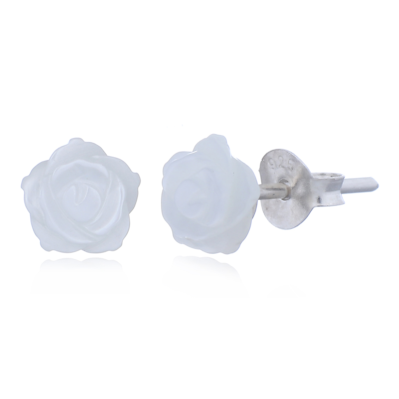 These elegant rose stud earrings feature a delicate Mother of Pearl inlay, adding a soft, luminous touch to the classic floral design. Perfect for enhancing any look, they offer timeless beauty with a refined, natural glow, making them an appealing choice for your customers’ collections.