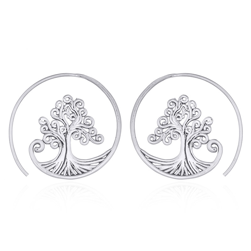 A beautiful tree of life lays on the inside of the open circle that crates these earrings. Small neat spirals create the branches and leaves of the tree numerous lines of silver spread from the bottom to form its roots. 925 silver tree of life earrings that grant a unique twist to this popular design.