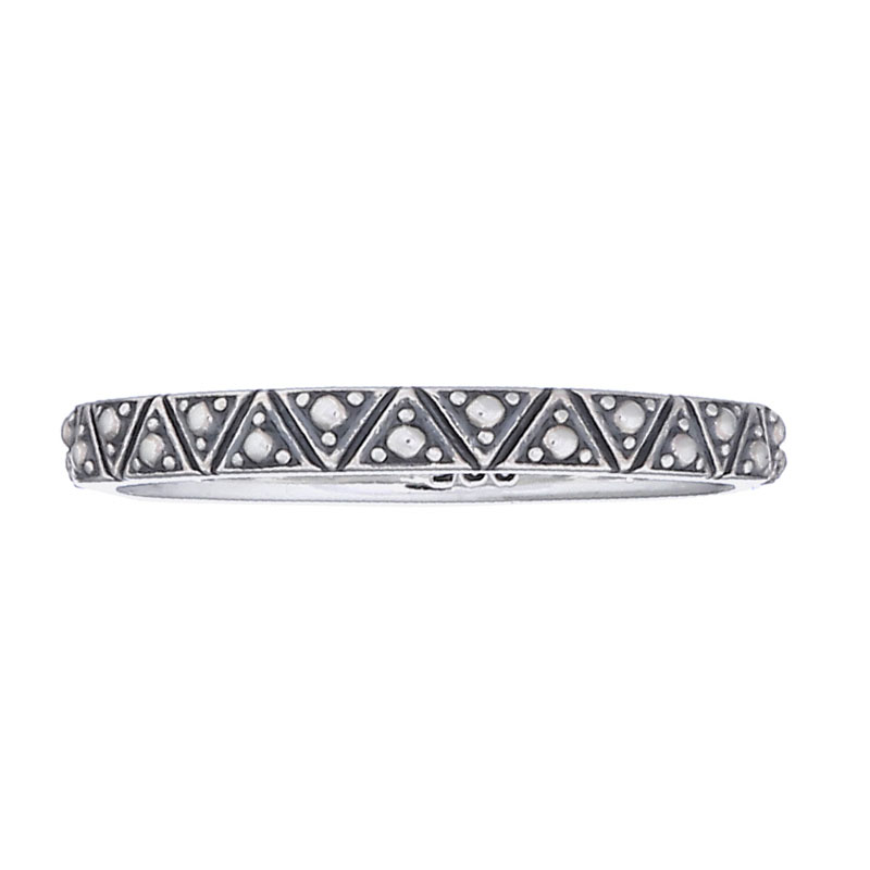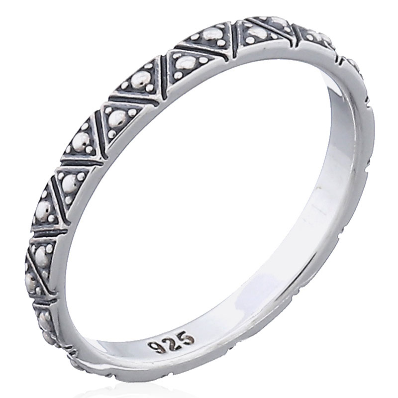 Adorned with silver spots on each mini triangle link, this ring exudes contemporary flair. Retailers can appeal to customers looking for unique and trendy pieces that elevate their jewelry collection.