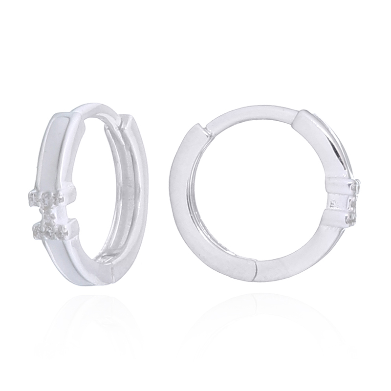 This Simple Sterling Silver Hoop Earrings Featuring White Enamel Details can elevate your inventory with dual white enamel grooves converging mid-hoop, highlighted by a distinctive faceted “I” silver accent. Ideal for retailers offering refined, contemporary jewelry that blends clean design with unique craftsmanship.