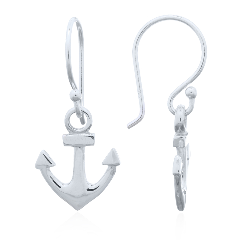 Casted sterling silver forms cute small anchors with a lot of personality. A perfect shape in the traditional Admiralty pattern carefully buffed and polished displays a decent amount of shine. On round wire hooks each cute anchor will look fantastic on the ears.