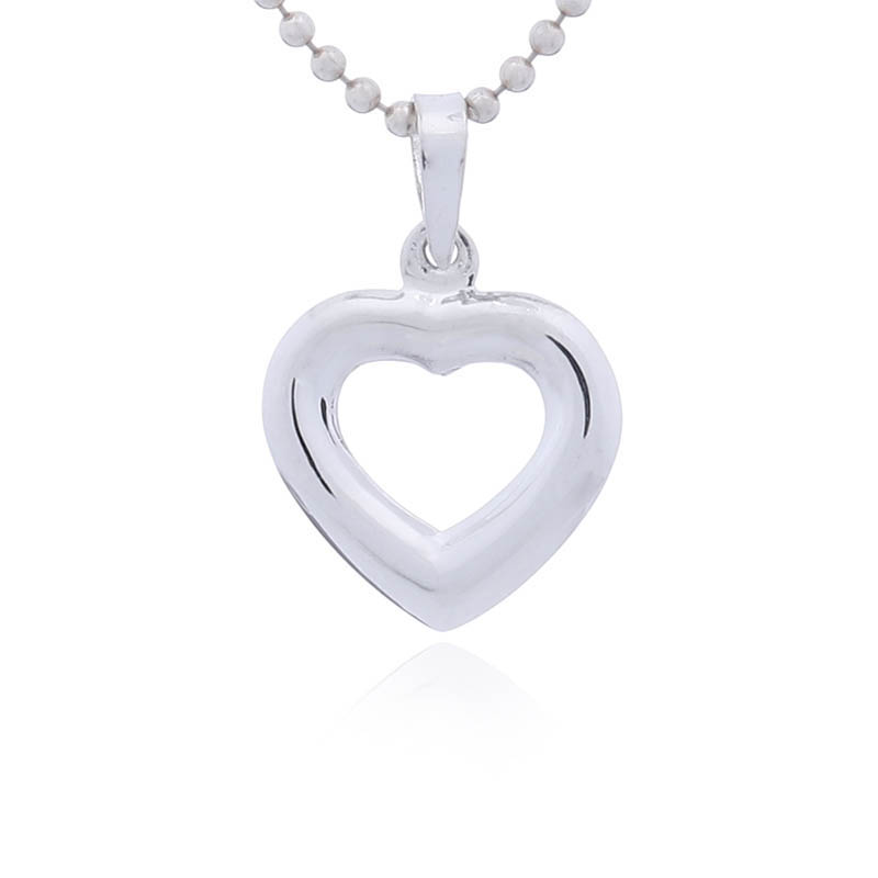 Small convex open heart Sterling Silver pendant brings an adorable plain silver jewelry to the neckline and a statement of love for the world to see. Precious high polished Hallmarked 925 silver dangles on its welded ring on the bail the generously puffed shape with the dainty open heart shifted towards the top creates a lovely timeless silver heart pendant with an on trend touch.