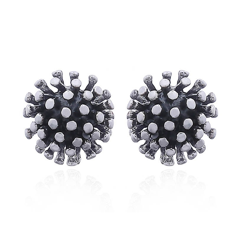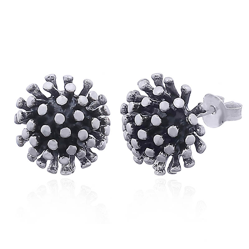 Tapering drop shapes arranged in a semi-sphere shaped cluster compose this pair of Sterling Silver Stud earrings that add an extraordinary silver jewelry to a woman’s looks. Beautifully accentuated with antique finish and brightly polished at the tops the clusters show a stunning contrast that makes this small 925 silver earrings to fabulous eye-catchers that jazz up the style. Secured with silver butterfly backs these Stud earrings are a pleasure to wear.