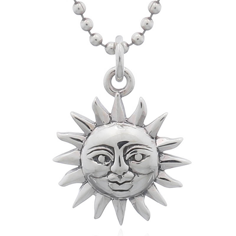 Shinning Sun with smile face pendant in 925 sterling silver.