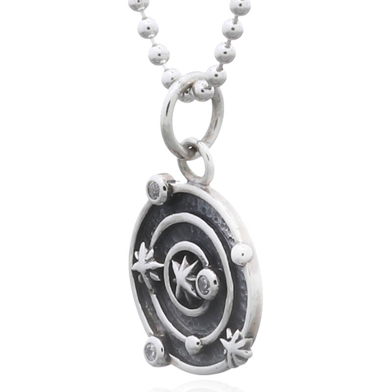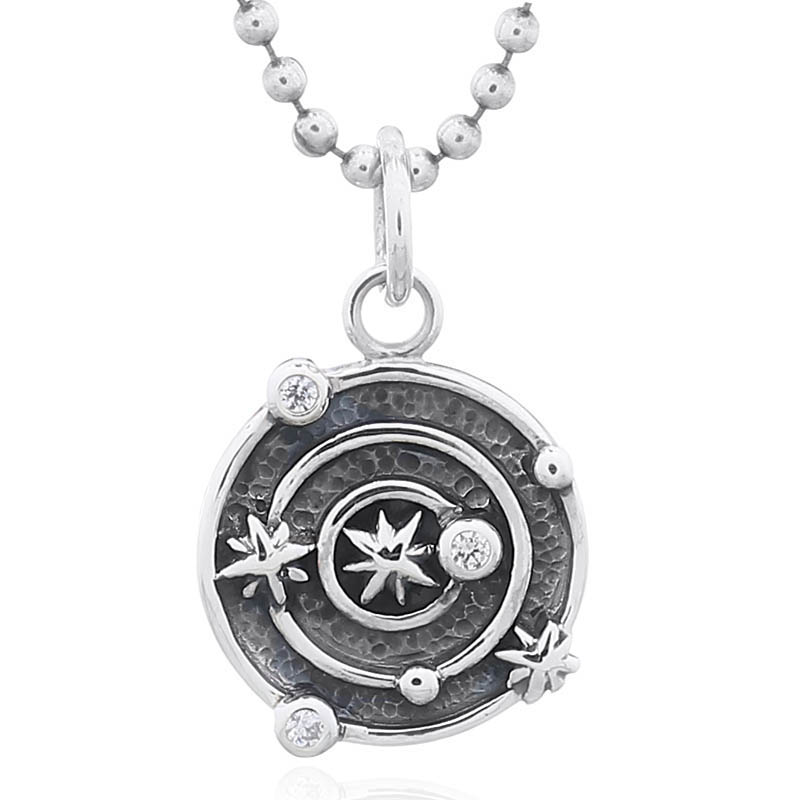 This CZ and sterling silver solar system pendant is a cosmic statement piece, offering intricate detailing of planets. Retailers can attract customers looking for bold, space-inspired jewelry.