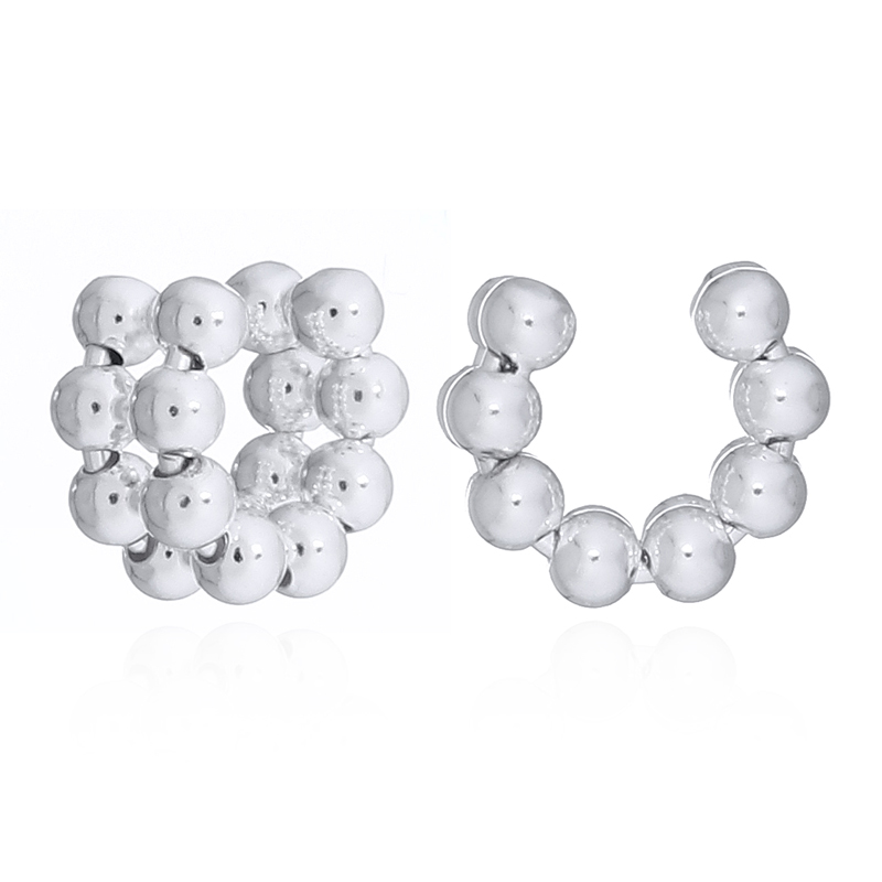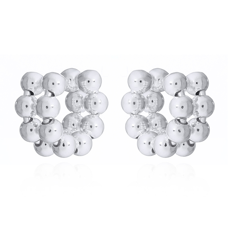 These Sophisticated 925 Sterling Silver C-Shape Beaded Cuff Earrings showcase a modern C-shape design with two rows of seven silver beads each, resembling a delicate bead chain. Perfect for retailers seeking elegant, textured accessories that complement contemporary and classic jewelry collections.