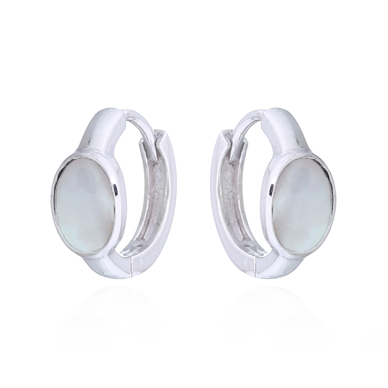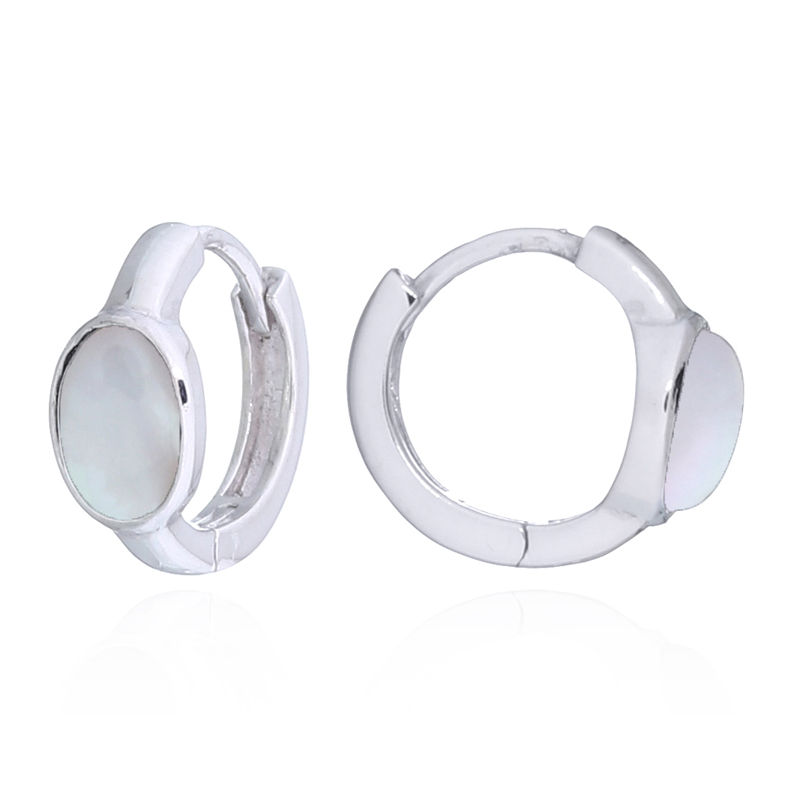 Crafted from high-quality 925 sterling silver, these hoop earrings showcase a beautiful oval mother of pearl inlay. Their hinged closure ensures comfort and security, making them an ideal choice for retailers offering versatile and elegant jewelry to customers.