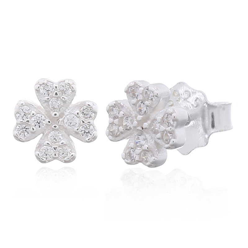 Brighten up your collection with these charming clover flower studs featuring dazzling white CZ stones. Their petite size and sparkling design make them an excellent choice for customers looking for cute yet elegant accessories for everyday wear.