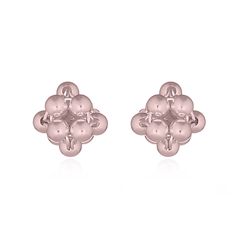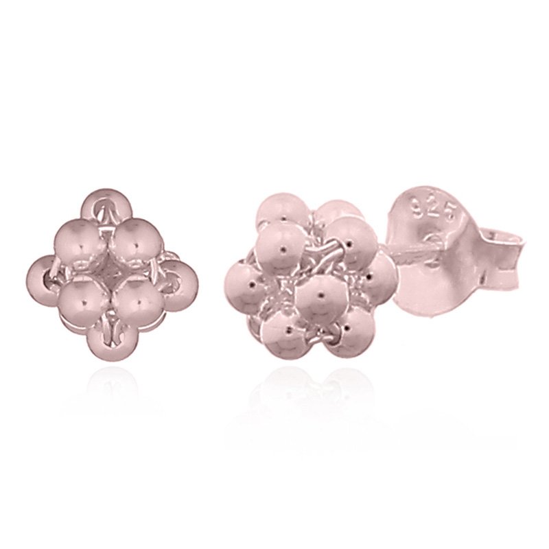 Flash Rose Gold Plated on 925 Silver Stud Earrings and spheres are linked each other in flower shape.