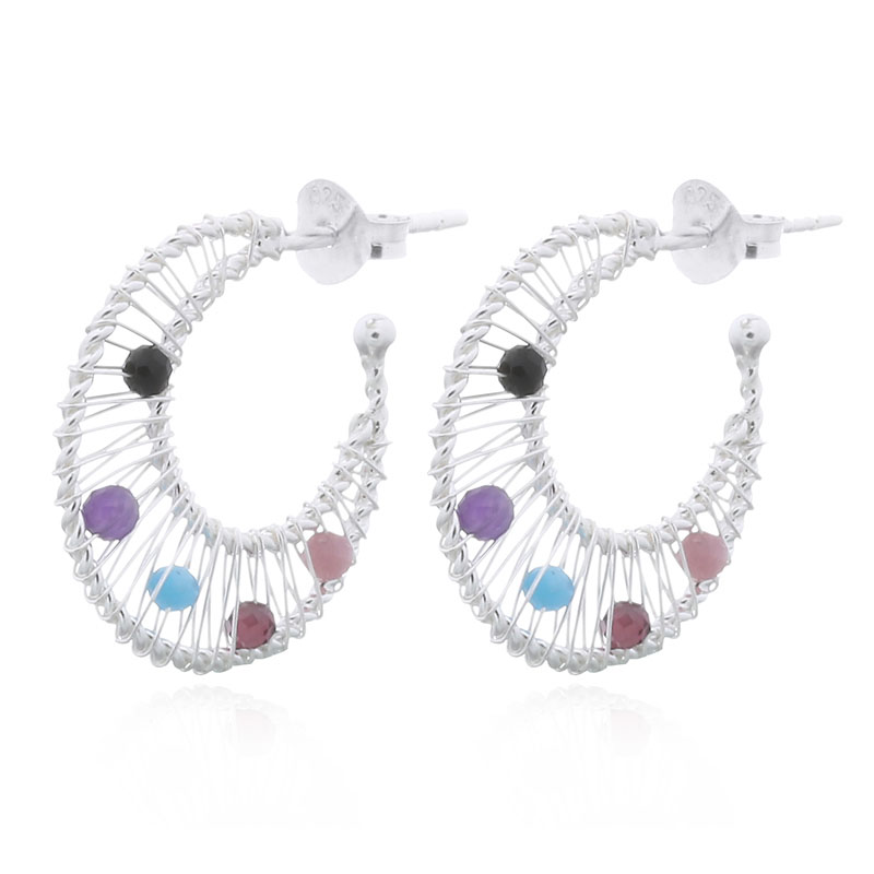 925 Sterling Silver, Amethyst, Black Agate, Blue Apatite, Garnet, Tourmaline