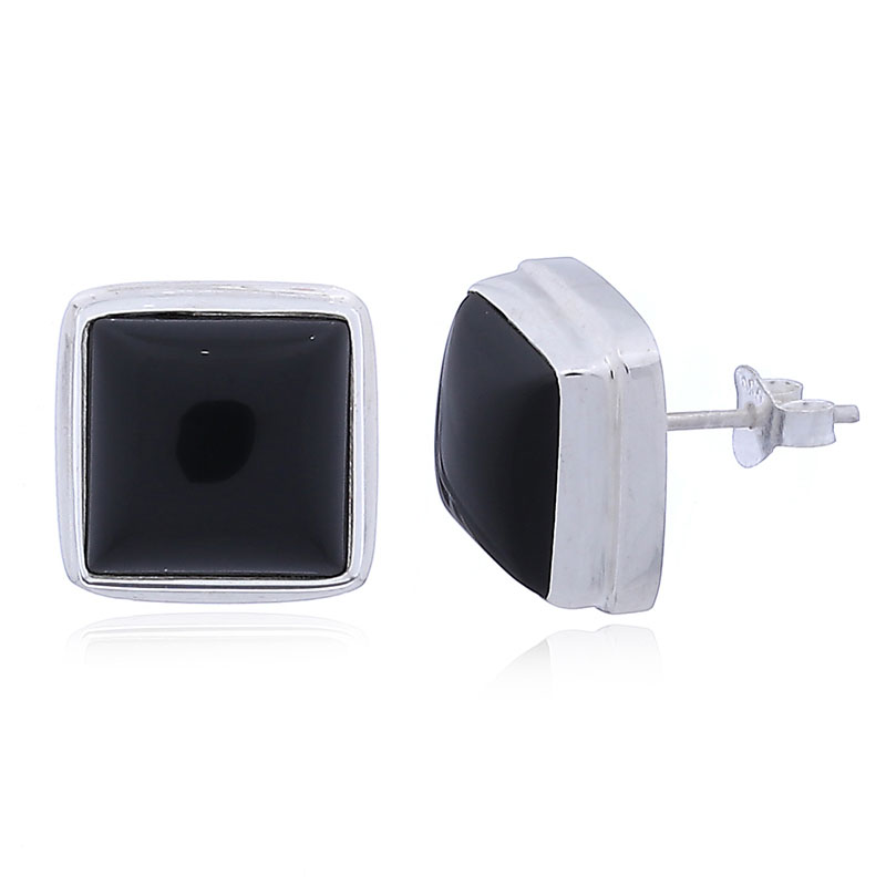 Simple square cut and highly polished Black Agate gems set in shiny Sterling Silver with a tiny flange surround create these daily wear fine gemstone Stud earrings. Effective jewelry does not have to be large! These classic Ear Studs add elegance and look gorgeous with various clothing styles and add the finishing touch before stepping out the door. Secured with silver butterfly back take care that these small Studs sit tight.