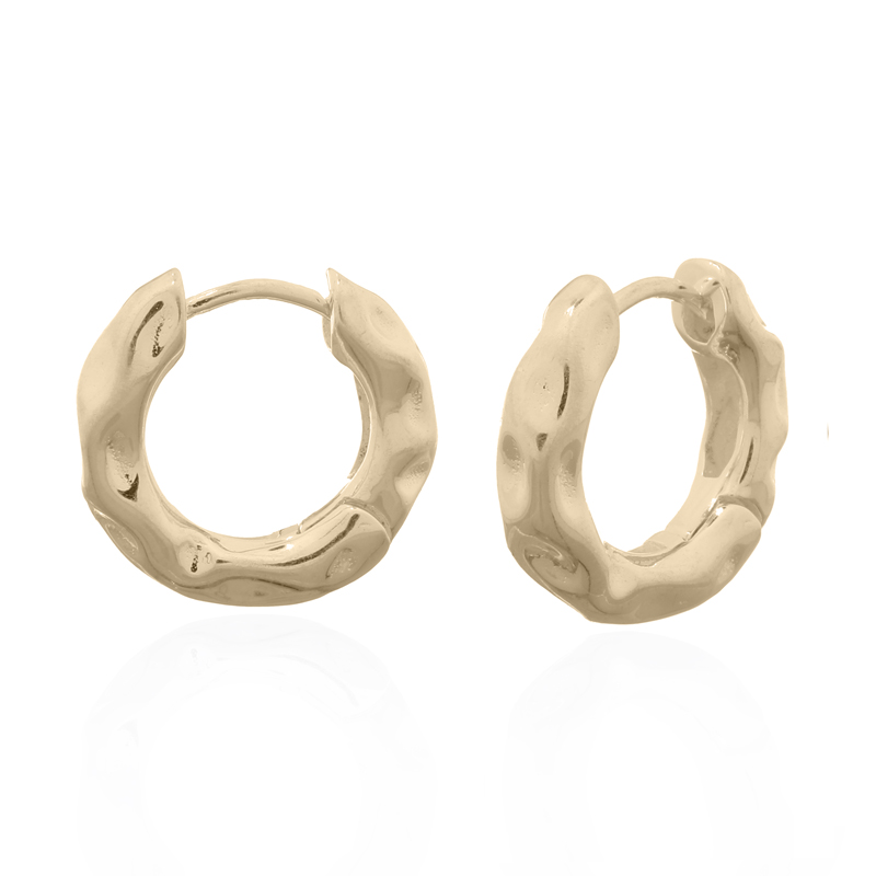 These stunning earrings feature a unique squashed surface that creates an eye-catching texture, enhancing their visual appeal. The hinged design ensures comfort and ease of wear, making them a stylish addition to any outfit. Stock these elegant hoops to provide your customers with a chic accessory!