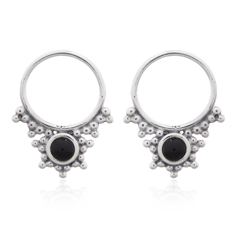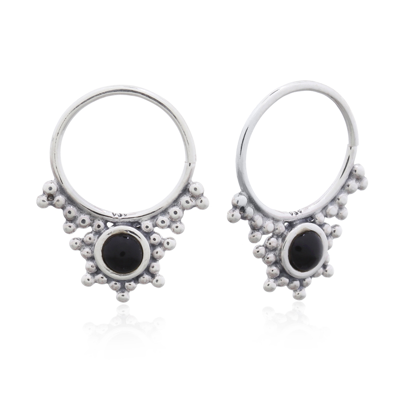 These dainty septum rings in tribal black synthetic stone offer a unique, edgy look. Perfect for adding a distinctive touch to your jewelry lineup. Enjoy our products manufactured in our own facility for reliable quality.