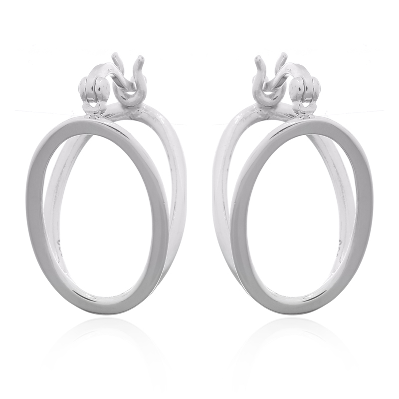 The sterling silver double oval hoops offer a sophisticated twist on a classic design, making them a standout piece in any jewelry collection. Their layered design adds depth and elegance. Benefit from wholesale prices and products made in our own facility.
