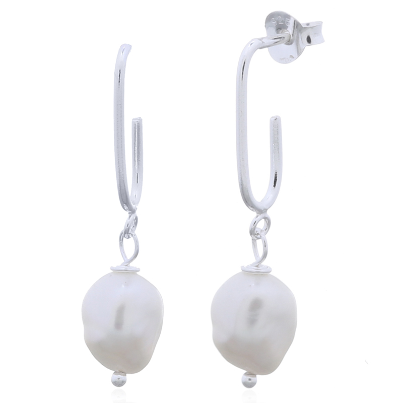 Sterling silver earrings with freshwater pearl drops and a rectangle stud design offer a sophisticated and elegant look. Perfect for upscale retailers. Enjoy the advantage of factory-direct pricing.
