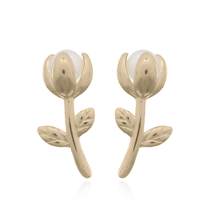 Delicately crafted, these Sterling Silver Gold-Plated Petite Rose Pearl Stud Earrings exude elegance and charm. Each stud features a graceful rose stem design adorned with a luminous freshwater pearl, adding a touch of sophistication to any look. Perfect for both everyday wear and special occasions, these earrings blend classic beauty with modern refinement.