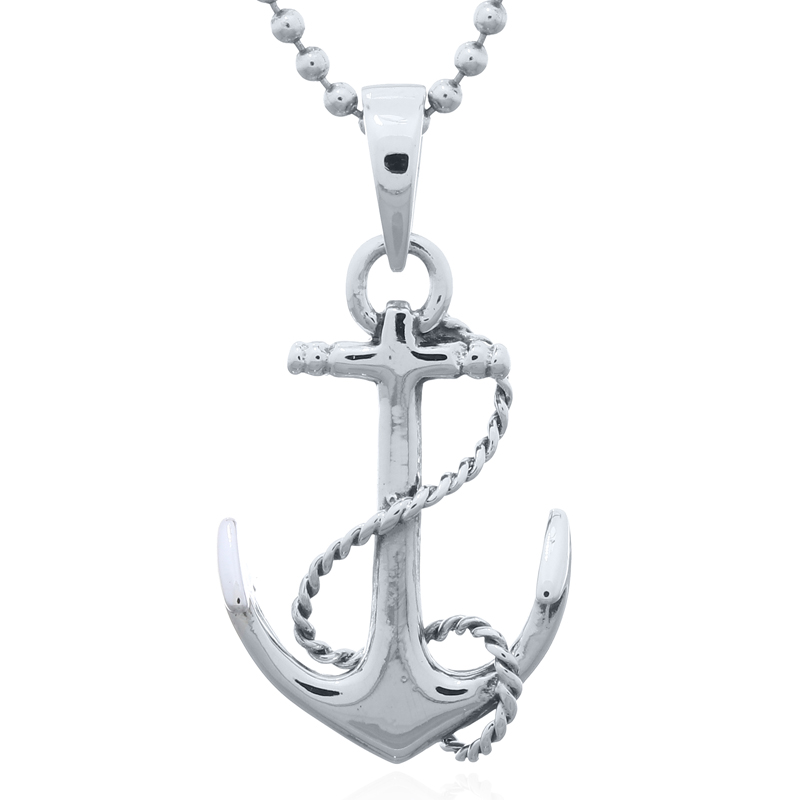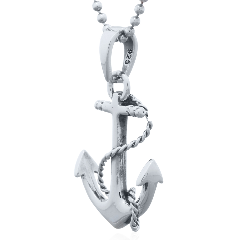 Sterling Silver pendant features a beautiful twisted antiqued finish accentuated rope that winds around the high polished brightly shining anchor creating a Planet Silver designer charm pendant of the classy and timeless theme. Gorgeous traditional silver jewelry with a deep rooted meaning and symbols of protection and well being. This silver anchor charm stands for a safe home coming getting rooted and settling down. Classic silver jewelry that is always in fashion. This fine charm will be a constant reminder of the person that wishes well.