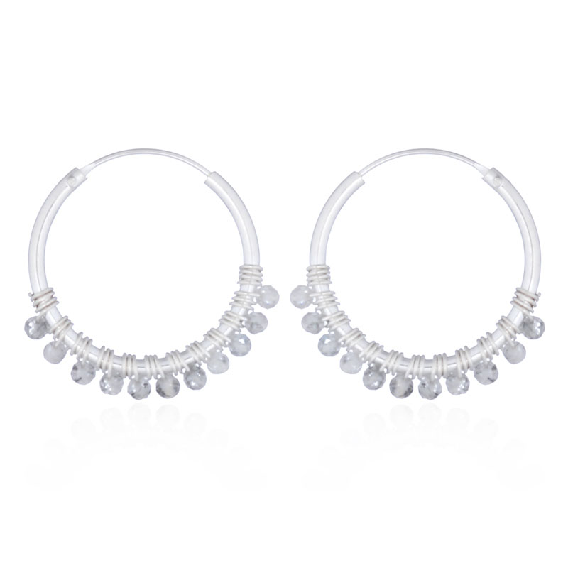 Faceted Rutilated Quartz beads are listed on sterling silver circle hoops.