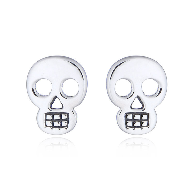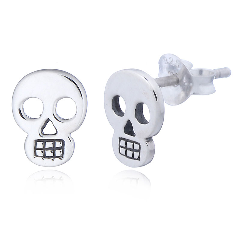 Very smooth and shiny pair of gothic skulls in mini size sterling silver stud earrings.