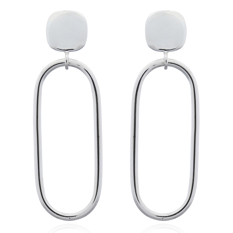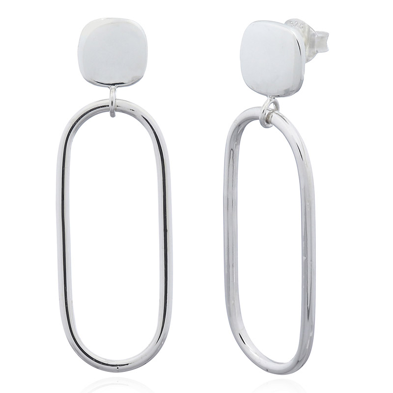 Oval long link hanging on the square disc stud earrings is classically and sophisticated. The perfect combination for timeless accessories.