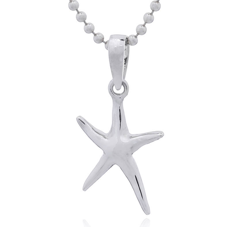 Small and minimalistic Sterling Silver starfish charm pendant showcases its Planet Silver jewelry design that produced this starfish as a superb and dainty silver jewelry with irregular long five rays or arms that are tapered towards the ends. The slightly convex center generates an abundant shine on the high polished Hallmarked 925 Sterling Silver shape that reflect and mirrors the surround fabulously. A simple and attractive silver pendant that adds a dash of silver to the neckline. Gorgeous set can be composed with the Dangle earrings Product ID: E528.