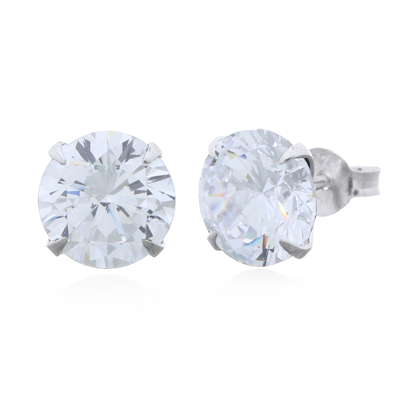Sparkly Sterling Silver clear Cubic Zirconia Stud earrings display their radiant bright shine enhancing the appearance of a woman. Versatile earrings suited for all occasions and all outfits – these earrings cover it all. Secured with butterfly fastening these earrings are evergreens and will always stay in fashion.