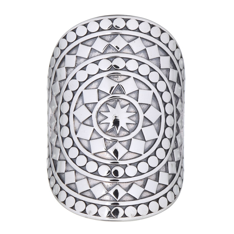 A bold statement piece, this bulky ring features a sun mandala design, making it perfect for customers who love standout accessories. Its striking appearance is ideal for retailers seeking to offer eye-catching designs.